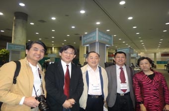 陸文秀教授(右一)、杜之渝教授(右二)與臺灣著名眼科專家何一濤教授(右三)、張朝凱教授(右四)在ASCRS會議上的合影 |