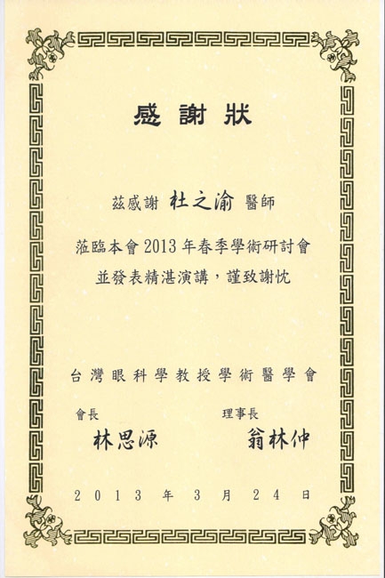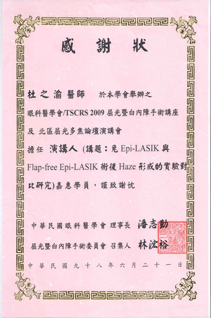 杜之渝教授美國白內(nèi)障及眼屈光協(xié)會(ASCRS) 會員證