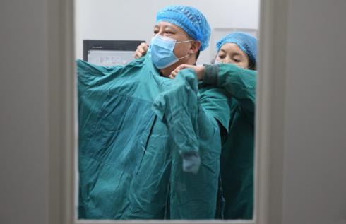 杜之渝準(zhǔn)備給患者做手術(shù)。
