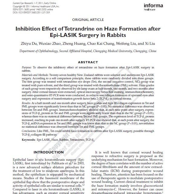 - Inhibition Effect of Tetrandrine on Haze Formation after Epi-LASIK Surgery in Rabbits