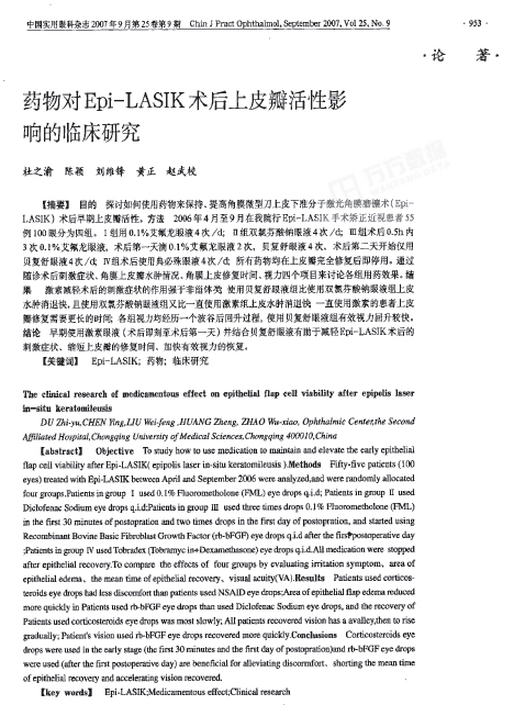 - 藥物對Epi-LASIK術(shù)后上皮瓣活性影響的臨床研究