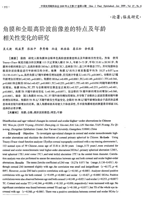 - 角膜和全眼高階波前像差的特點(diǎn)及年齡相關(guān)性變化的研究