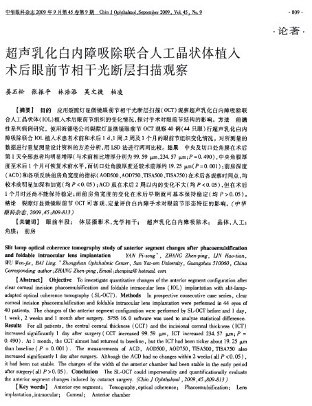 - 超聲乳化白內(nèi)障吸除聯(lián)合人工晶狀體植入術(shù)后眼前節(jié)相干光斷層掃描觀察